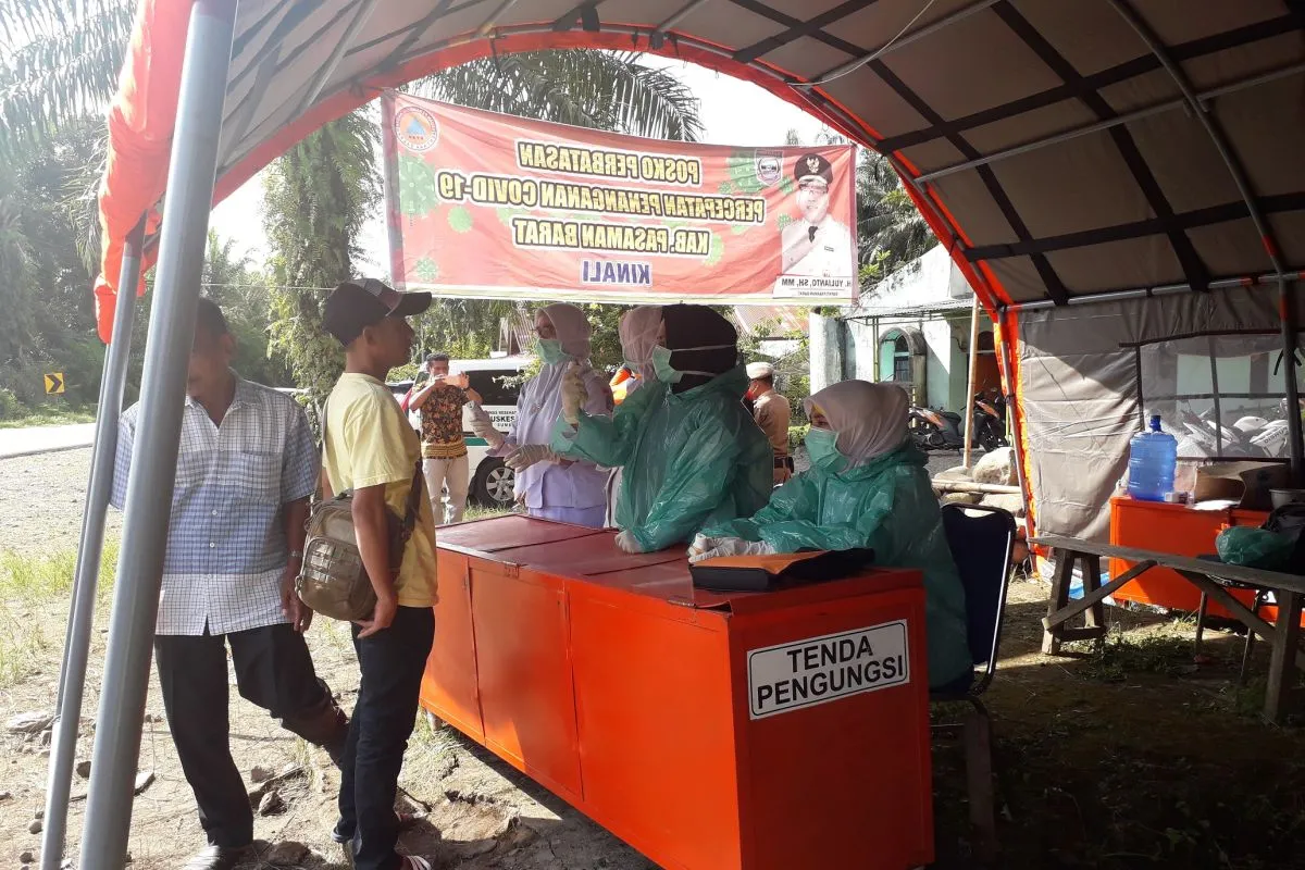 Pemkab Pasaman Barat perketat pengawasan di daerah perbatasan bagi yang masuk ke Pasaman Barat. Pemkab meminta warga yang baru datang dari luar daerah atau luar negeri segera lapor untuk cek kesehatan antisipasi COVID-19. (antarasumbar/Altas Maulana)
