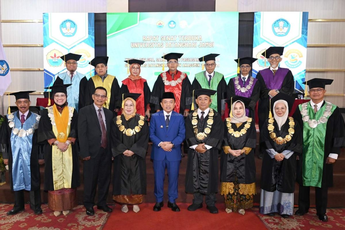 Gubernur Jambi, Dr. H. Al Haris, S.Sos., MH dalam sambutannya menyampaikan rasa bangga kepada para wisudawan yang telah menyelesaikan studi mereka di Universitas Batanghari Jambi.