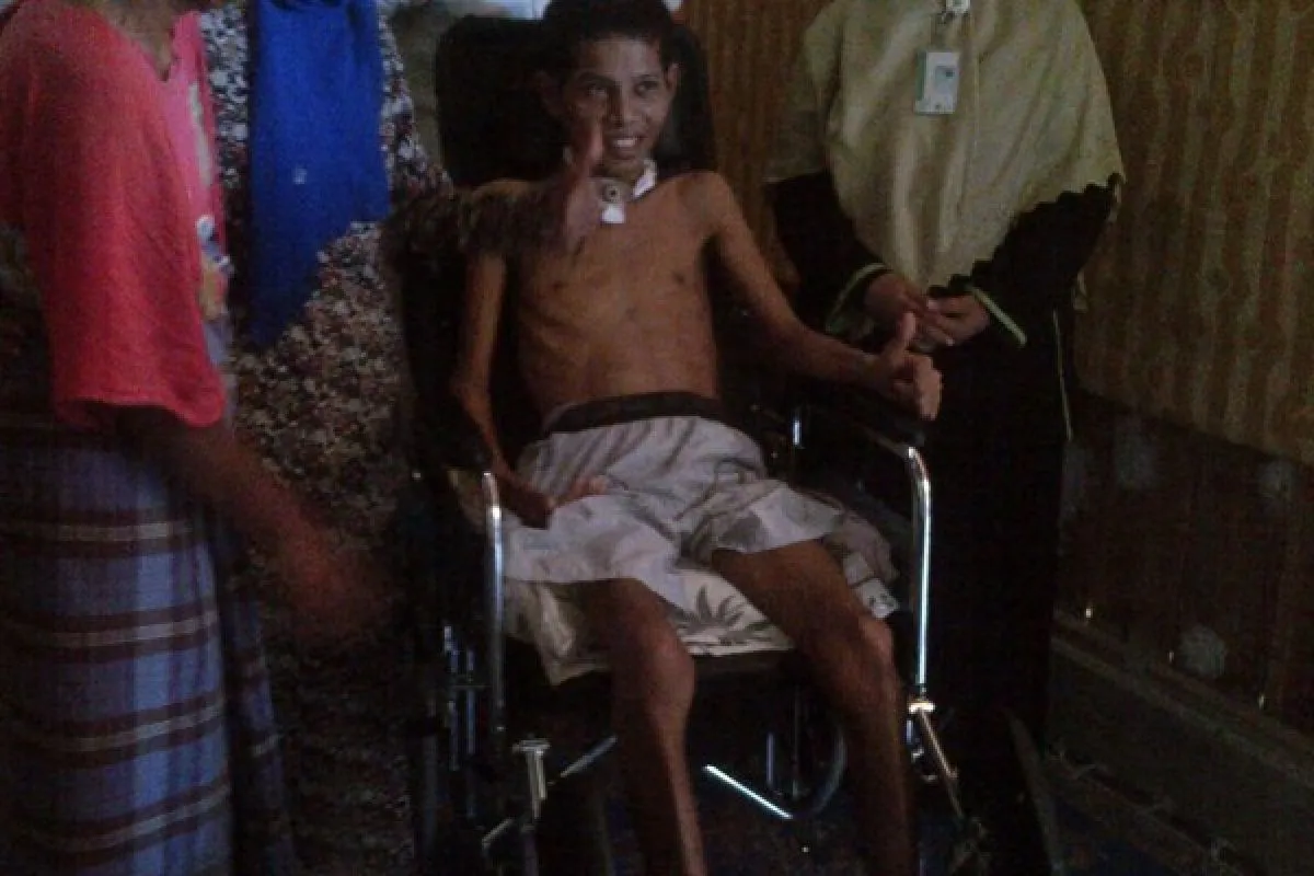 Padangpariaman - Berkali-kali Yusuf mengusap matanya dengan tangan kiri yang kini masih berfungsi dengan baik. Mulutnya bergerak, "bara?" begitu para tetangga mengartikan apa yang ingin diucapkannya ketika itu. Mereka sengaja datang untuk melihat Yusuf dan kursi roda barunya.Senin (15/4), perwakilan donatur dari Persatuan Majelis Taklim (PMT) Sumbar dan tim Dompet Dhuafa Singgalang hadir mengantarkan sumbangan kursi roda 'three in one'.Melihat gerak mulut Yusuf yang menanyakan harga kursi roda tersebut, semua sontak tersenyum. "Ini dari semua donatur untuk Yusuf, banyak yang menyayangi Yusuf," ujar donatur di kediaman Yusuf di Dusun Titian Akar Kec. Batang Anai, Padangpariaman. Yusuf kembali meneteskan air mata. Murutnya bergerak mengatakan terimakasih. Dalam benaknya, kecelakaan bulan Desember tahun lalu hampir merenggut segala-galanya.Hendak berangkat kerja, dia mengalami kecelakan yang membuatnya harus terkapar hingga kini. Padahal, berbilang hari lagi dia akan menikah.Tabrak lari yang menimpanya menyebabkan kesepuluh tulang rusuk Yusuf patah, paru-paru pun bocor. Gagal nafas. Menikah tak jadi, jangankan bersanding di pelaminan, berbaring di tempat tidur pun dia kepayahan. Kini, dia masih menjalani rawat jalan di RSUP M.Djamil. Dengan kursi roda bantuan donatur dari PMT, Mantan Ketua DPRD Sumbar Djohari Kahar dan donatur lainnya membuat Yusuf begitu terharu. Inginnya untuk keluar bisa terwujud. Dia menyentuh roda kursi roda barunya dengan tangan kiri, menggerak-gerakkannya dan tersenyum. "Yusuf ini ingin sekali keluar rumah, cuma sejak abangnya pergi ke Jakarta kami tidak kuat mengangkatnya keluar," terang kakak Yusuf.Sementara itu, terkait pernafasannya yang terganggu, Yusuf masih membutuhkan alat penyedot dahak. Setiap satu jam sekali suara gemuruh timbul dari tenggorokannya. "Kalau sudah begitu, harus segera dibersihkan agar dia bisa bernafas kembali," paparnya. Seandainya alat penyedot dahak itu sudah dimiliki Yusuf, tentu tak akan begitu repot lagi. Uluran tangan Anda memberikan semangat hidup pada Yusuf. Hubungi Dompet Dhuafa Singgalang (0751) 40098 atau 0853 74 252 777 untuk donasi Anda. (winda)