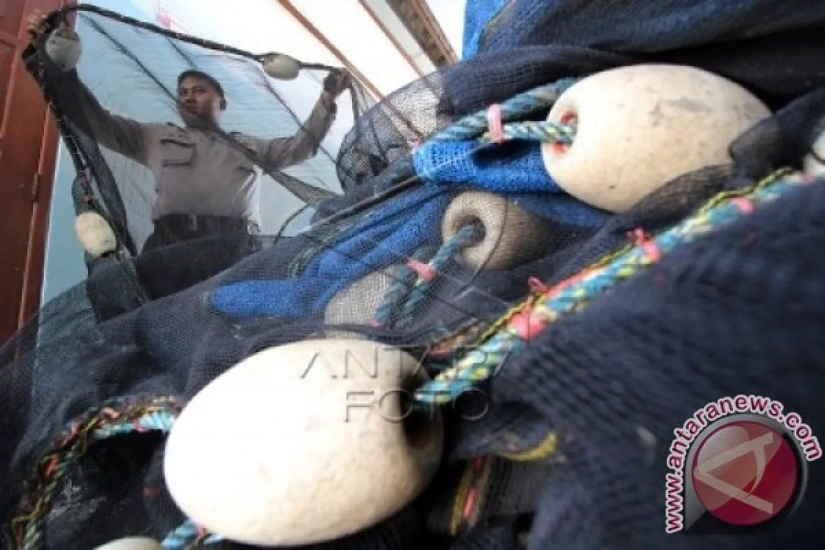 Ilustrasi. Petugas polisi perairan memperlihatkan jaring Payang Modifikasi yang disita dari nelayan asal Probolinggo di halaman kantor Unit Pengelola Pelabuhan Perikanan pantai Lekok, Pasuruan, Jawa Timur. (ANTARA FOTO/Moch Asim)