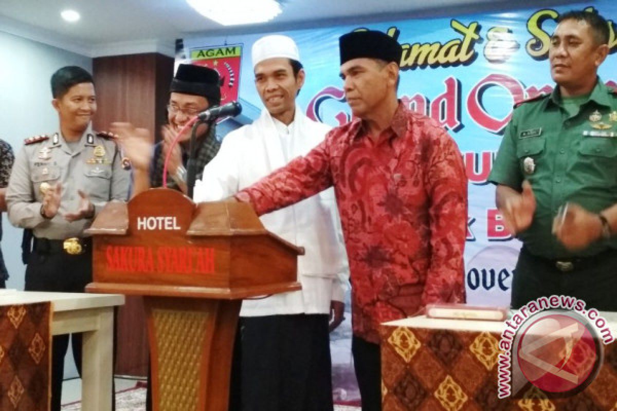 Lubukbasung, (Antara Sumbar) - Ustaz memberikan tausiah dalam rangka grand opening Hotel Sakura Syariah di Lubukbasung, Kabupaten Agam, Sumatera Barat, Kamis (9/11) malam.