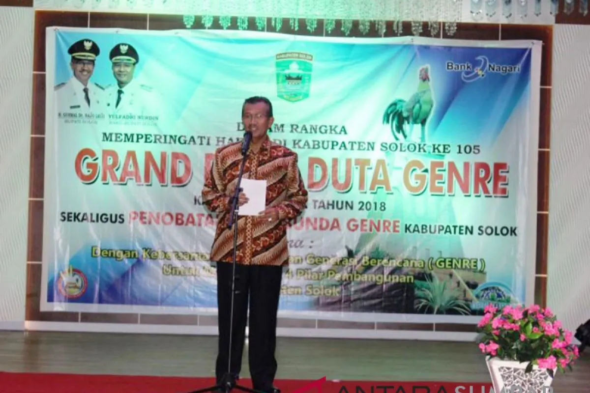 Bupati Solok Gusmal di Arosuka, Selasa mengharapkan duta Genre 2018 ini bukan sekedar ajang pemilihan tahunan belaka, duta Genre hendaknya menjadi motivator dan panutan yang memiliki karakter, integritas dan berjiwa semangat kebersamaan.