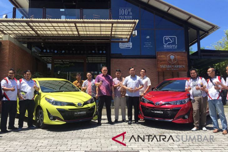 Kepala Auto 2000 Khatib Sulaiman Nur Imansyah Tara (tengah kanan), Kepala Toyota Intercom Padang (tengah kiri). Dealer resmi Toyota mulai memasarkan Toyota All New Yaris untuk kawasan Sumatera Barat, Kamis (8/3). (ANTARA SUMBAR/Mario S Nasution)