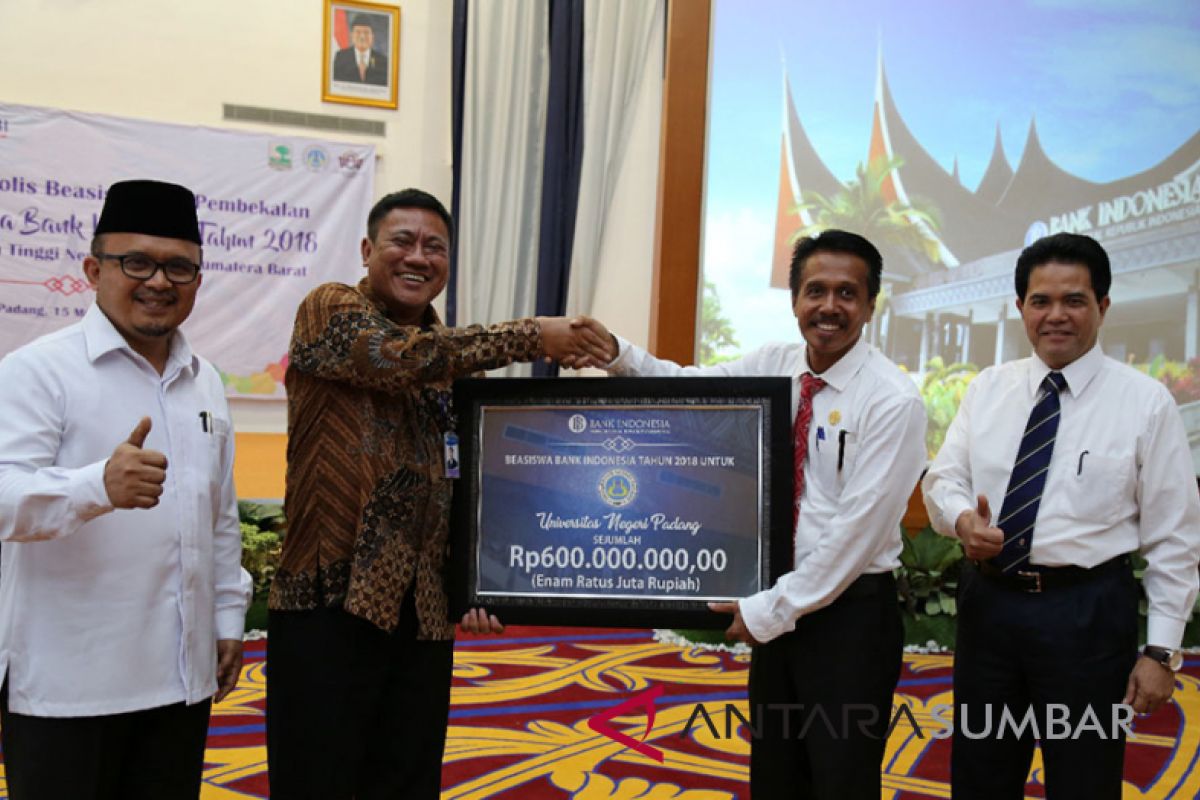 Padang, (Antaranews Sumbar) - A total of 50 students of Padang State University(UNP), West Sumatra get scholarship from Bank Indonesia (BI) with a total value of Rp600 million.