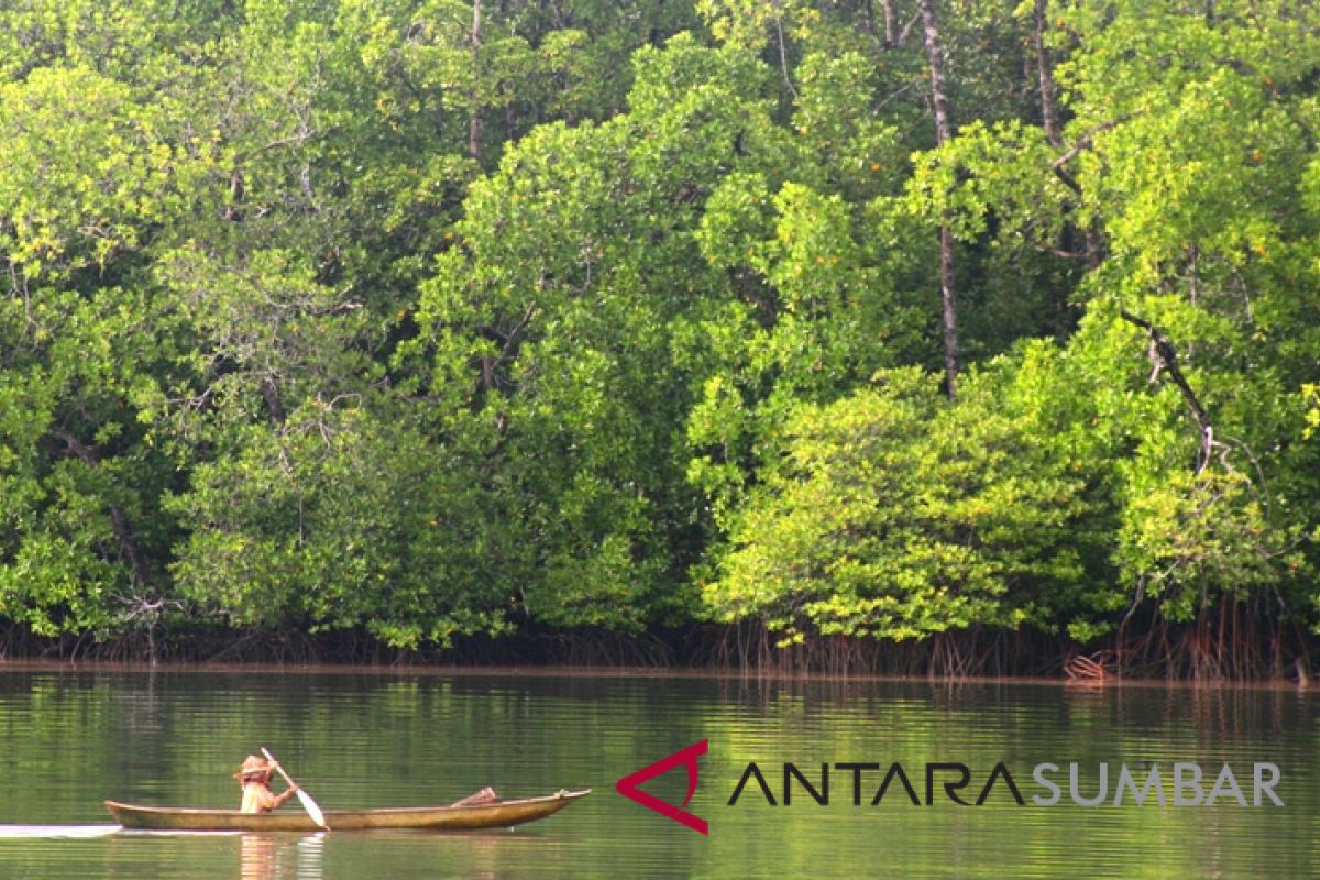 Warga melintas dengan perahunya di kawasan mangrove Tuapeijat, Mentawai, Sumbar, Rabu (11/7). Banyak wisatawan asing dan lokal berkunjung ke Pulauan Mentawai terutama musim libur selain menikmati wisata alamnya mangrove juga ombak dan pasir putih. ANTARA SUMBAR/Adi Prima/Maril/18.