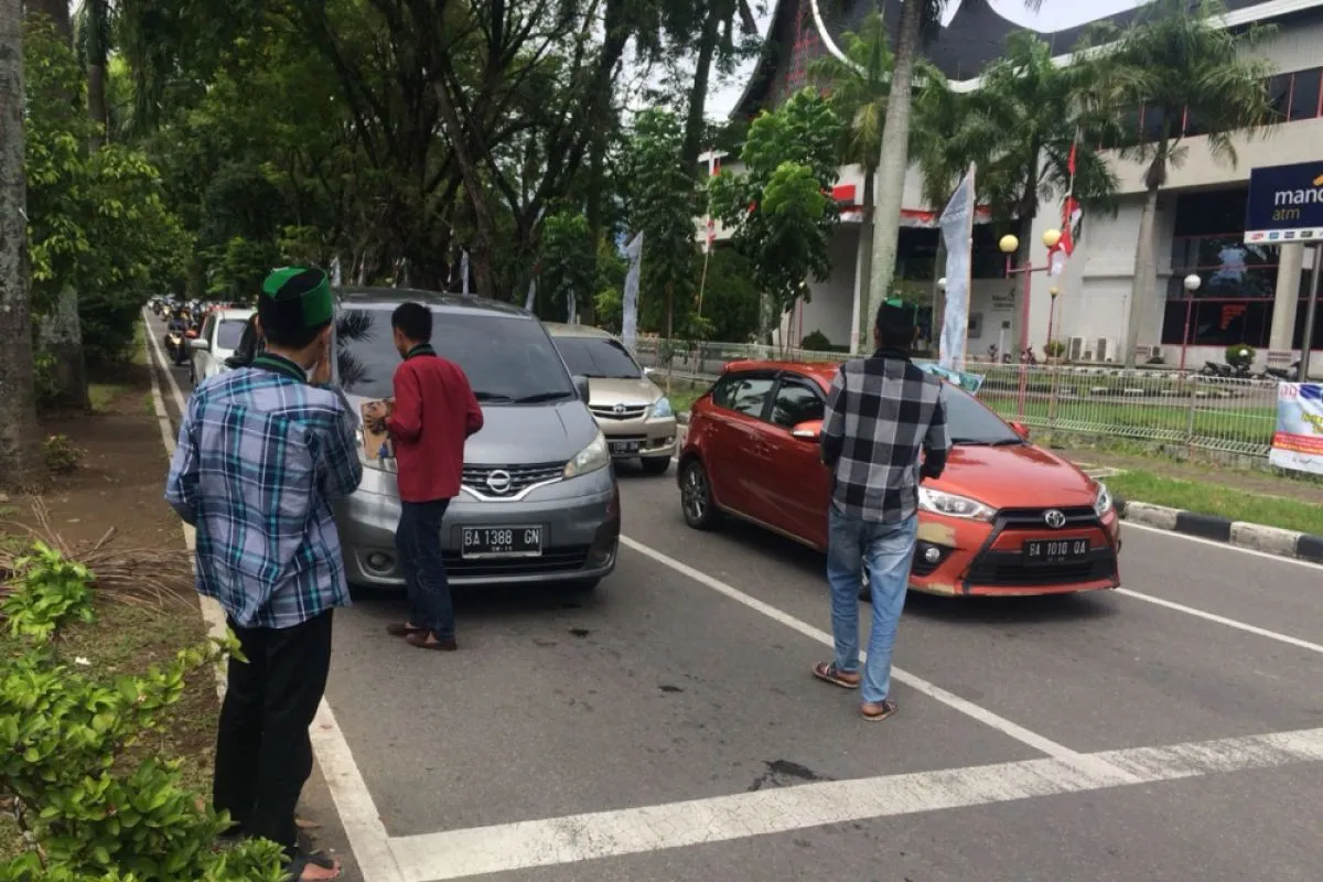 Semula aksi ini disebar di empat titik, namun untuk hari ini hanya difokuskan disimpang Mesjid Raya Sumbar.