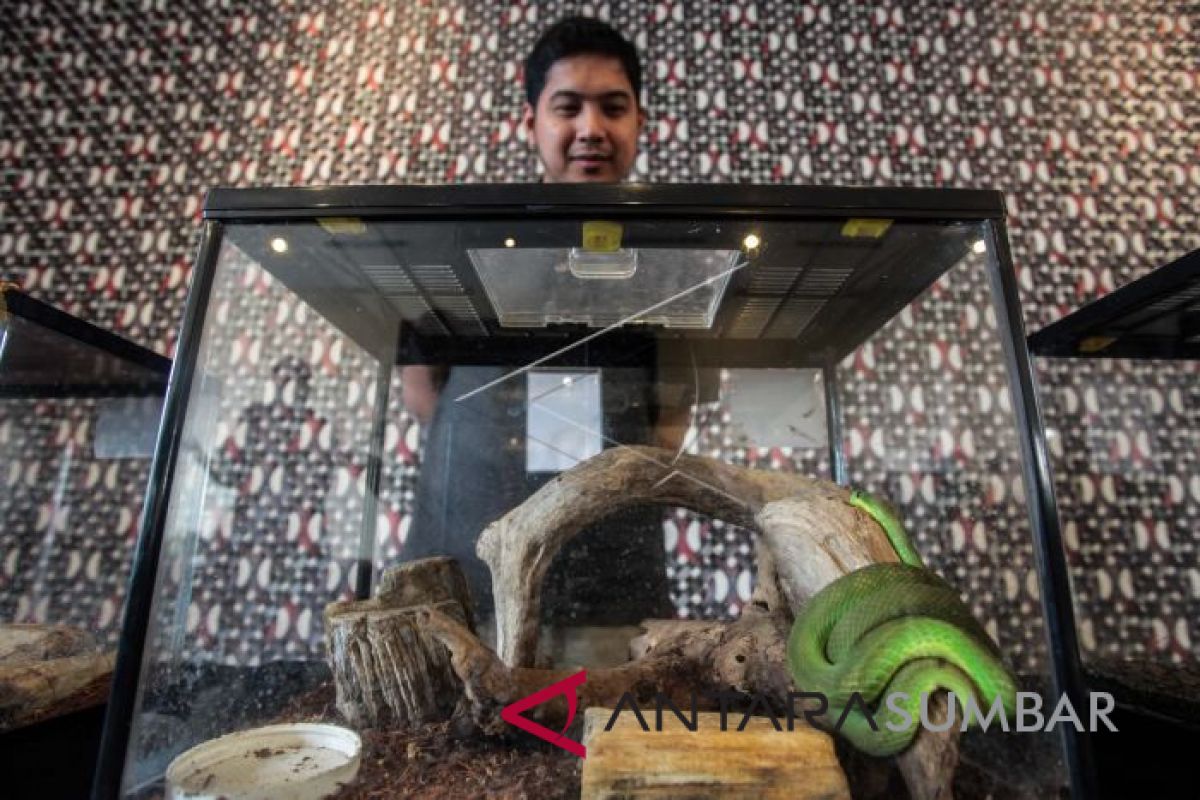 Peserta mengamati ular yang dipamerkan saat acara The 5th International Symposium on ASEAN Marine Animals and Snake Environment Envenoming Management (AMSEM) di Yogyakarta, Rabu (24/10/2018). Acara yang diikuti oleh puluhan tenaga medis serta ahli racun dari negara-negara anggota ASEAN dan berlangsung hingga 26 Oktober 2018 itu guna membahas penanganan penyakit akibat gigitan ular maupun hewan-hewan laut berbisa. ANTARA FOTO/Andreas Fitri Atmoko/aww.