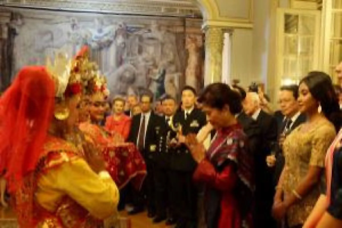 London, (Antaranews Sumbar) - Tari Pasambahan, khas Minang simbol ungkapan hormat kepada tamu tampil mempesona di hadapan 250 undangan kalangan korps diplomatik, pejabat tinggi dan anggota Parlemen Italia, serta mitra kerja KBRI Roma pada Resepsi Diplomatik HUT ke- 73 RI di Roma, Selasa(23/10).