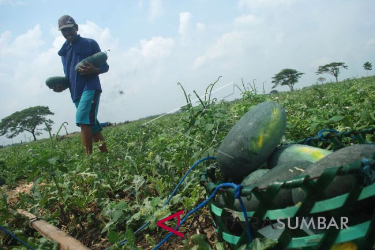 Buruh tani memanen semangka di areal persawahan Megaluh, Jombang, Jawa Timur, Kamis (08/11/2018). Pasca panen raya, harga semangka turun drastis ditingkat petani, karena kualitasnya menurun. Para tengkulak membeli buah semangka dengan cara tebasan Rp.2 juta per petak sawah, yang sebelumnya mencapai Rp.7 juta. ANTARA FOTO/Syaiful Arif/hp.