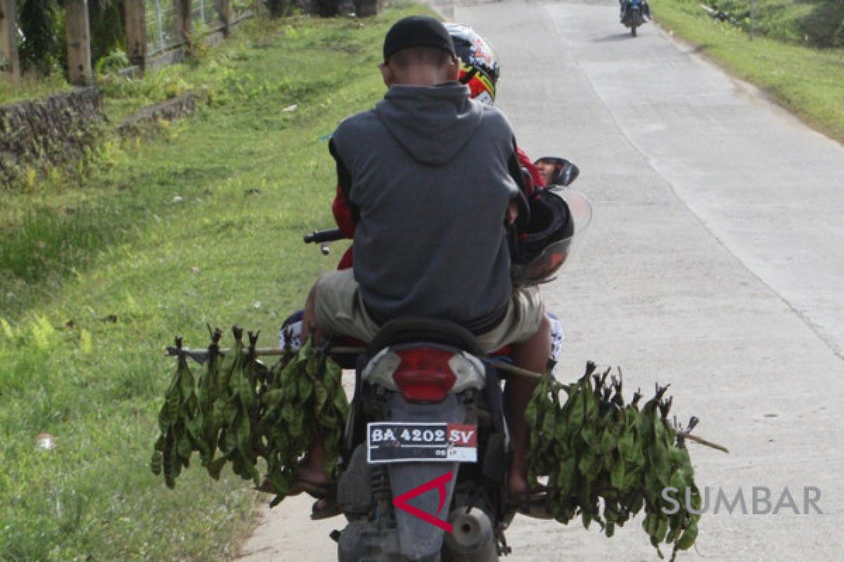 Dua orang pelajar berjualan petai keliling sepulang sekolah dengan sepeda motor .. ANTARA SUMBAR/Adi Prima/Maril/18.