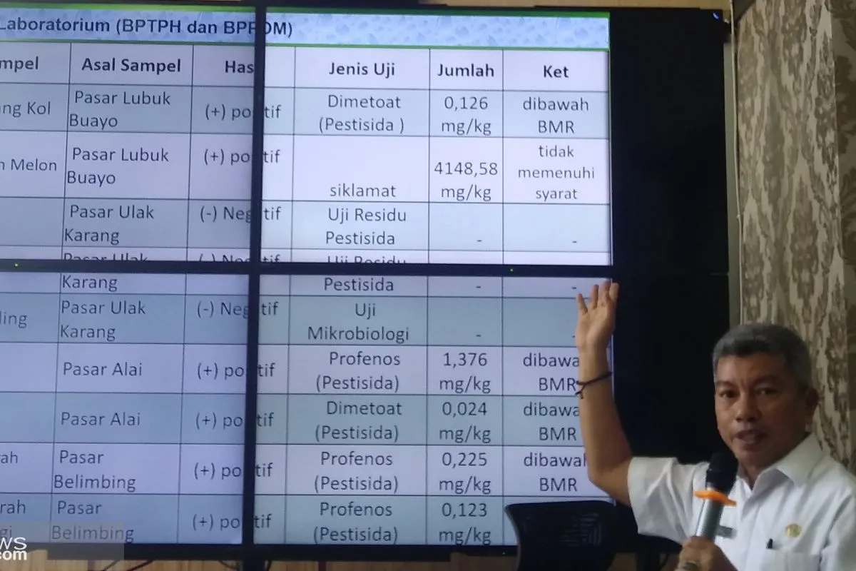 Selain memastikan ketersediaan pangan Dinas Pangan Padang juga memastikan keamanan pangan dengan melakukan pengujuan secara rutin pangan yang dijual di pasar.