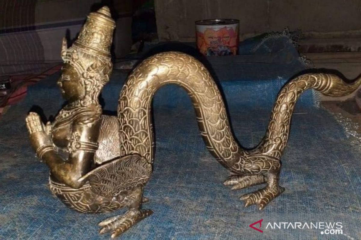 Benda yang kuat akan nilai sejarah itu berbentuk Patung Budha berbadan Naga atau Patung Ekor Naga dengan panjang sekitar 75 centimeter dan berat 2,5 kilogram.