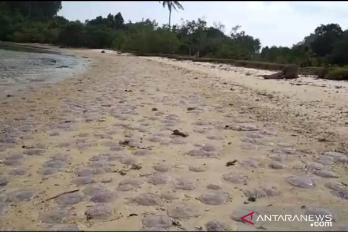 Painan (ANTARA) - Thousands of dead jellyfish were stranded because sea storm in Nagari Sungai Pinang beach, the Integrated Marine Tourism Area (KWBT) Mandeh, Pesisir Selatan Regency, W Sumatra, on Friday afternoon.