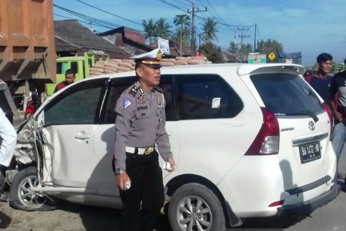 Minibus jenis Avanza itu juga sempat menyeret sepeda motor korban hingga akhirnya berhenti karena menabrak truk BA 8402 FU yang sedang diparkir.