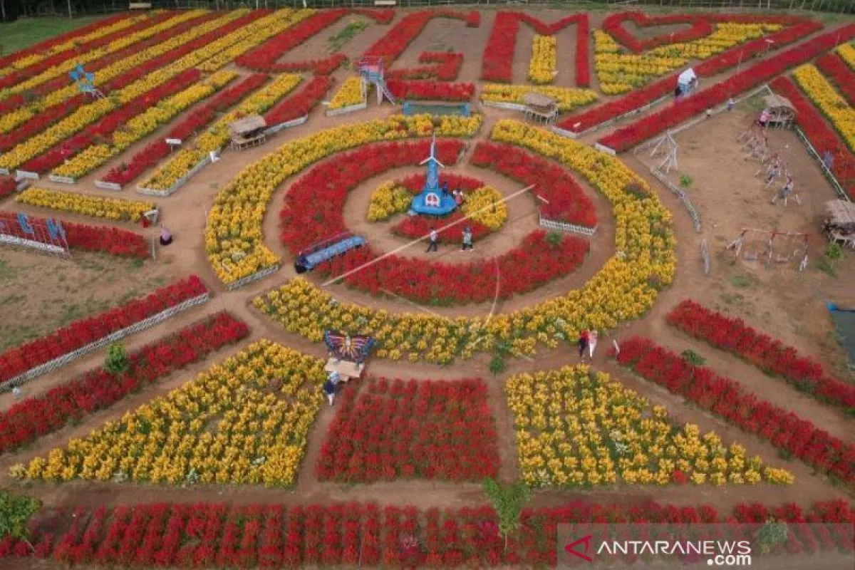 Pengunjung menikmati suasana taman bunga Celosia Gunung Medan, Dharmasraya, Sumatera Barat, Senin (23/12/2019). Tempat wisata yang baru dibuka tiga bulan lalu tersebut menambah pilihan wisata di daerah itu dengan kunjungan rata-rata antara 200-500 pengunjung per hari. ANTARA FOTO/Wahdi Septiawan/aww.