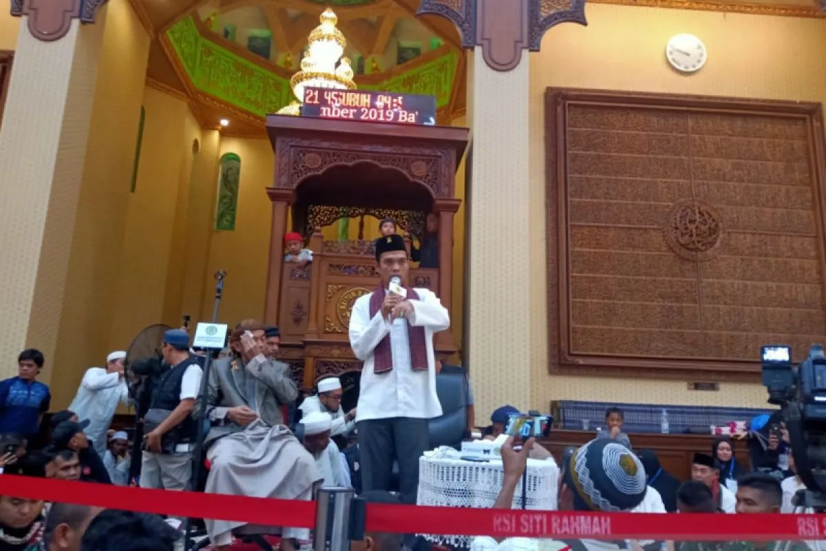 "Tanda ikhlas yang keempat, yakni disanjung tidak terbang dan saat dicaci tidak tumbang, dipuji tidak melambung dan saat dicerca tidak murung," ujar UAS di depan lebih 3.000 jamaah yang memenuhi Masjid Baiturrahmah.