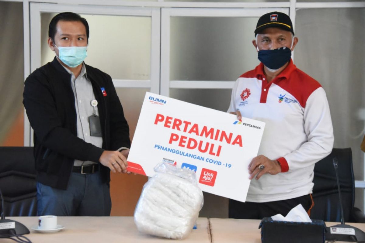 Pertamina menyerahkan bantuan alat pelindung diri kepada Wali Kota Padang Mahyeldi Ansharullah (Istimewa)