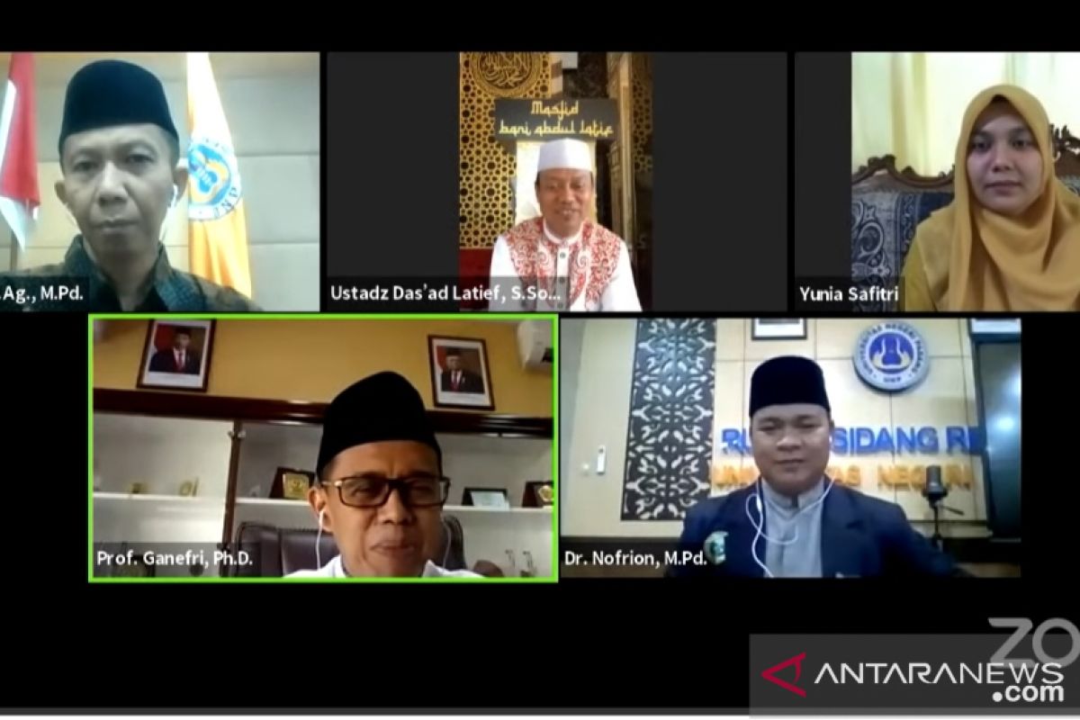 Padang (ANTARA) - Keluarga besar UNP melaksanakan halal bi halal secara daring dengan menghadirkan ustaz Dr. Das'ad Latief Ph.D. melalui zoom dan youtube Universitas Negeri Padang video streaming.