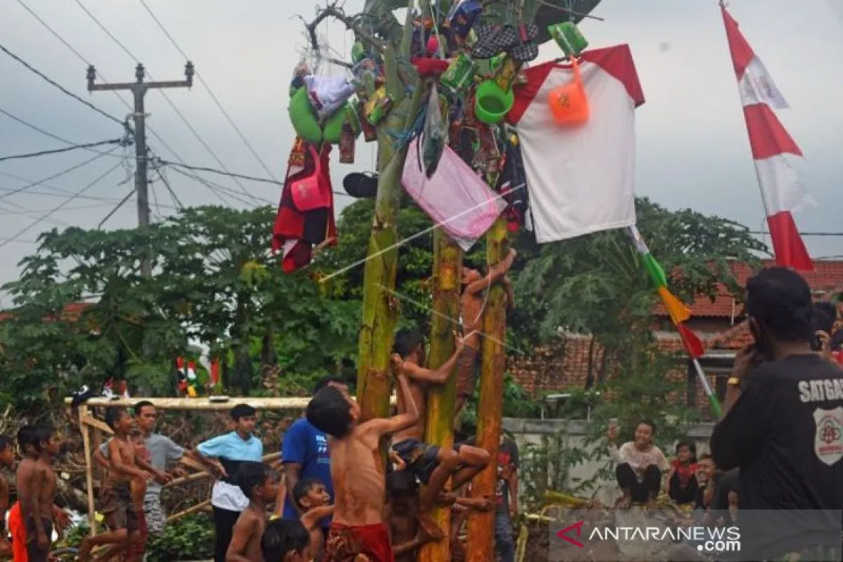 LOMBA PANJAT POHON PISANG id LOMBA PANJAT POHON PISANG,padang kini Selasa, 18 Agustus 2020 10:15 WIB Sejumlah anak mengikuti lomba panjat pohon pisang di Kampung Cilaku, Curug, Serang, Banten, Senin (17/8/2020). Acara tersebut berlangsung dalam rangka memeriahkan HUT ke-75 Kemerdekaan RI. ANTARA FOTO/Asep Fathulrahman/hp.
