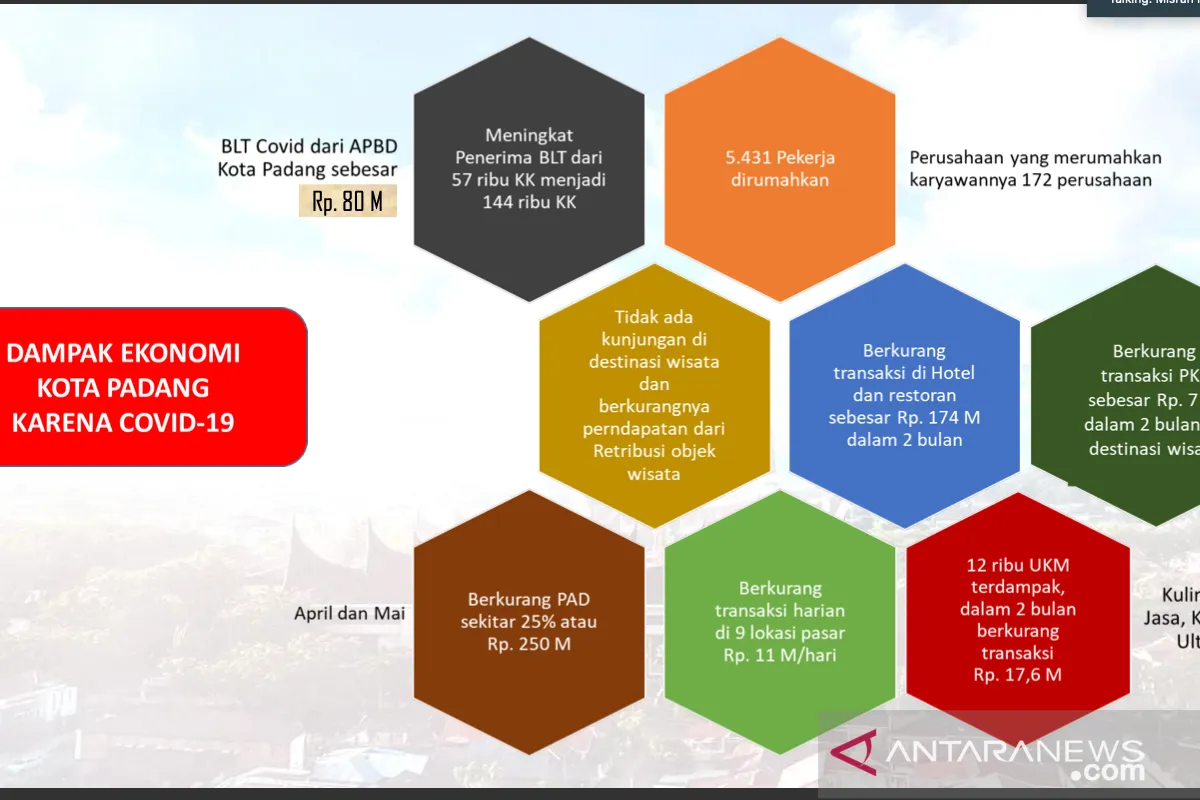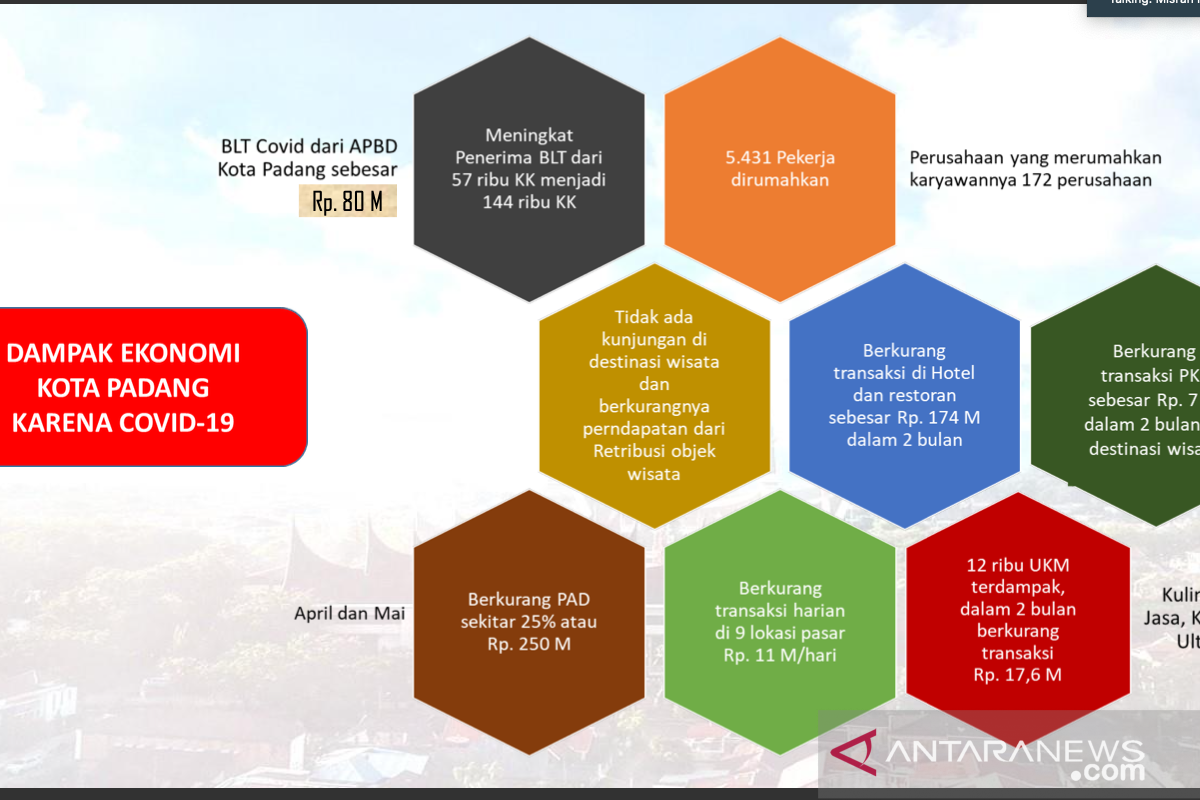 Kemudian penurunan tersebut juga berdampak bagi penerimaan pendapatan asli daerah kota Padang sebesar 25 persen atau Rp250 miliar.