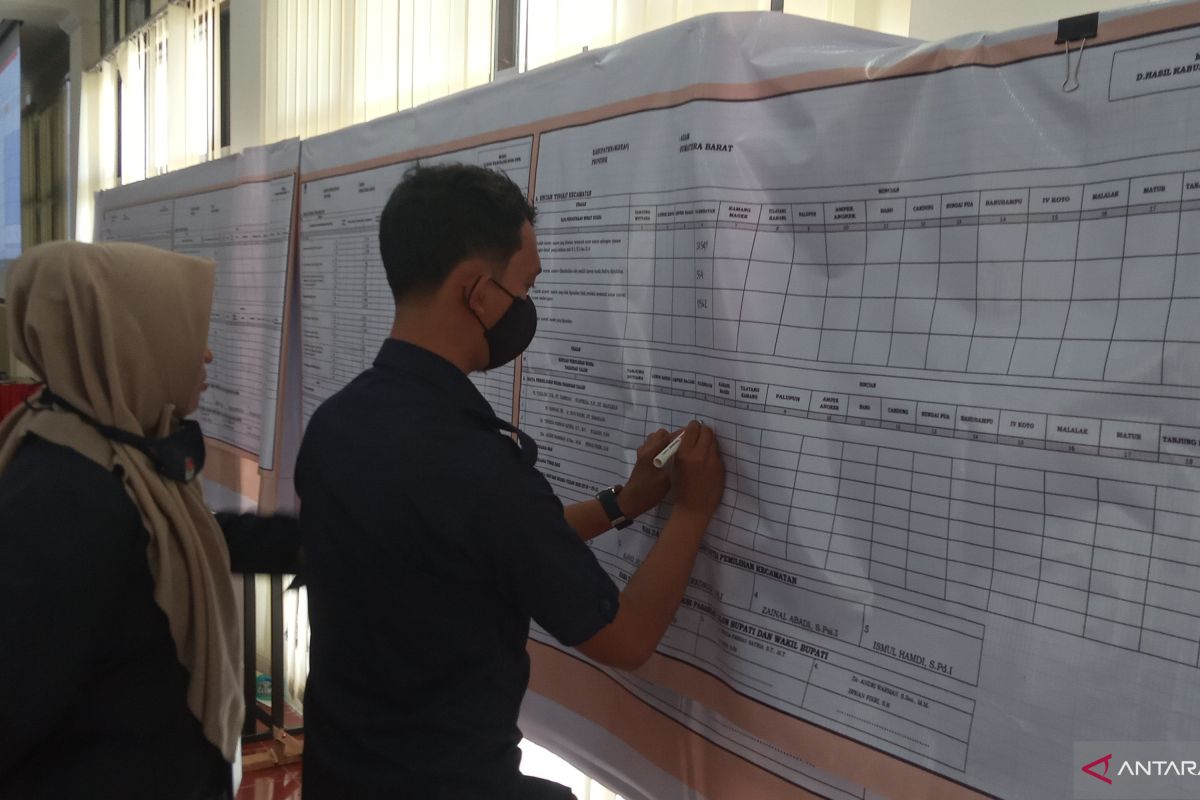 Lubukbasung (ANTARA) - Calon Bupati dan Wakil Bupati Kabupaten Agam, Sumatera Barat nomor urut empat Andriwarman (AWR)-Irwan Fikri unggul sementara dalam perolehan suara saat rapat pleno rekapitulas hasil perolehan penghitungan suara Pilkada Agam 2020 di aula kantor bupati setempat, Selasa.