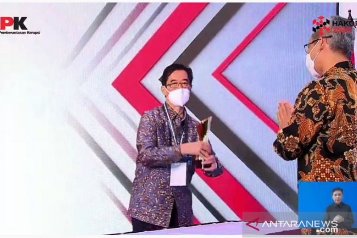Penghargaan diserahkan langsung oleh Pimpinan KPK, Alexander Marwata kepada Direktur Utama PLN, Zulkifli Zaini pada acara puncak peringatan Hari Antikorupsi Sedunia (Hakordia) tahun 2020, Rabu (16/12) di Gedung KPK, Jakarta.