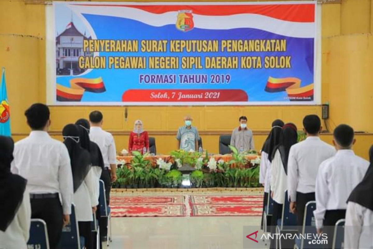 Solok (ANTARA) - Pemerintah Kota (Pemkot) Solok, Sumatera Barat menyerahkan Surat Keputusan (SK) Calon Pegawai Negeri Sipil (CPNS) kepada 67 orang yang lulus sesuai formasi yang dipilih dari 3.900 orang pelamar.