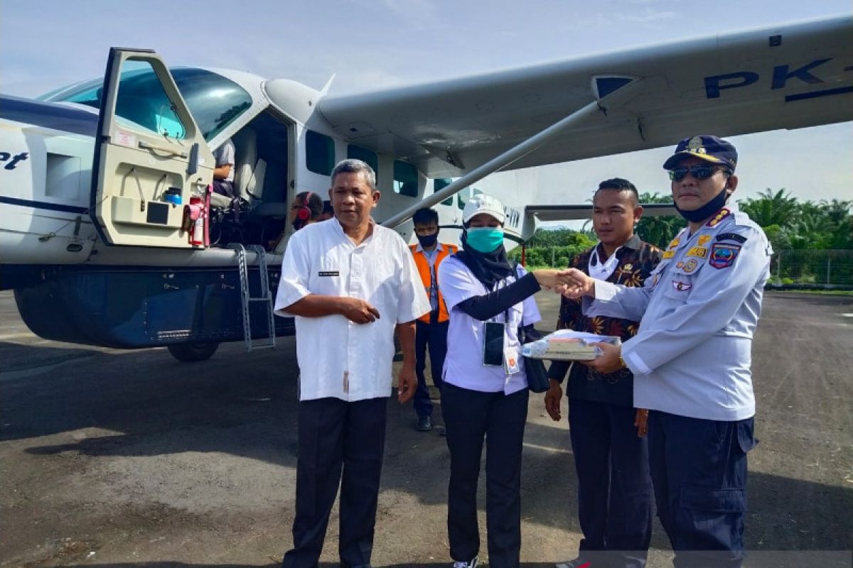 Kepala Dinas Perhubungan Pasaman Barat Rizaldi melalui Kepala Bandara Pusako Anak Nagari Eva Wardi Putra saat penerbangan perdana beberapa waktu lalu. (Antarasumbar/Istimewa)