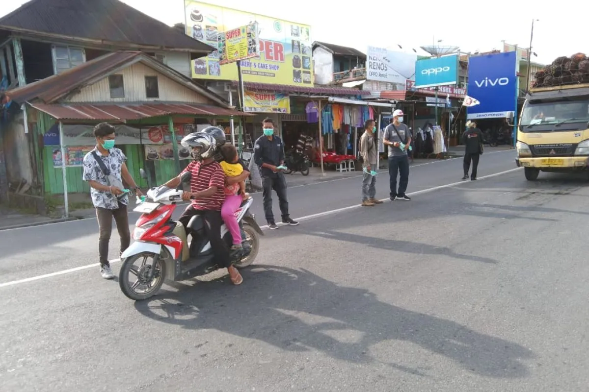 Ketua Jurnalis Online Pasaman Barat, Muhammad Fadli di Simpang Empat, Selasa, mengatakan masker itu dibagikan kepengguna jalan, pedagang dan masyarakat di sejumlah jalan-jalan utama di Simpang Empat.