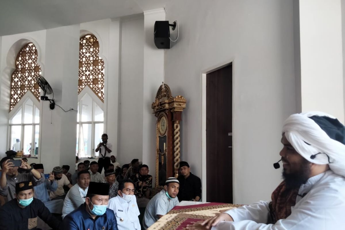 Painan (ANTARA) - Ustadz Derry Sulaiman bertausiyah di Masjid Terapung Samudera Ilahi yang berada di kawasan wisata Pantai Carocok Painan, Kabupaten Pesisir Selatan, Sumatera Barat, Rabu.