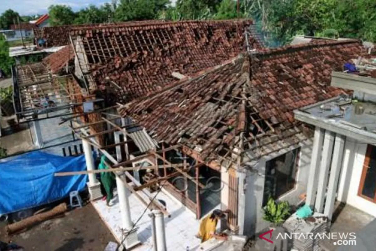 Rumah warga rusak setelah diterjang angin puting beliung di Dusun Puri, Desa Puri Semanding, Kecamatan Plandaan, Kabupaten Jombang, Jawa Timur, Jumat (26/11/2021). Akibat peristiwa itu, sekitar 25 rumah dan sebuah mushala dilaporkan mengalami kerusakan. ANTARA FOTO/Syaiful Arif/hp.