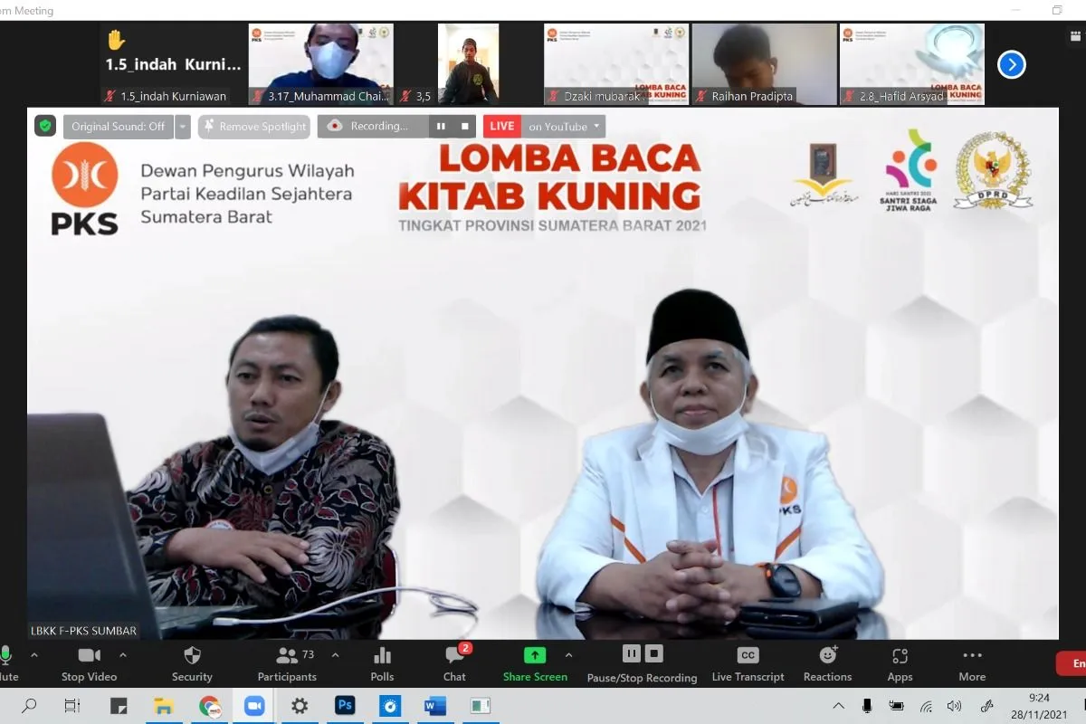 Padang (ANTARA) - Fraksi Partai Keadilan Sejahtera DPRD Sumatera Barat kembali menggelar lomba baca Kitab Kuning yang digelar secara daring pada 28 November hingga 4 Desember 2021 .