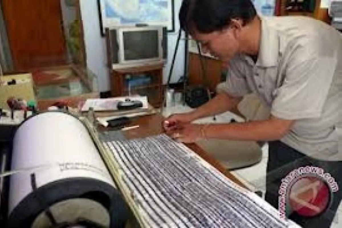 Ilustrasi. Petugas menunjuk pergerakan gempa yang tercatat oleh seismograf. (Antara)