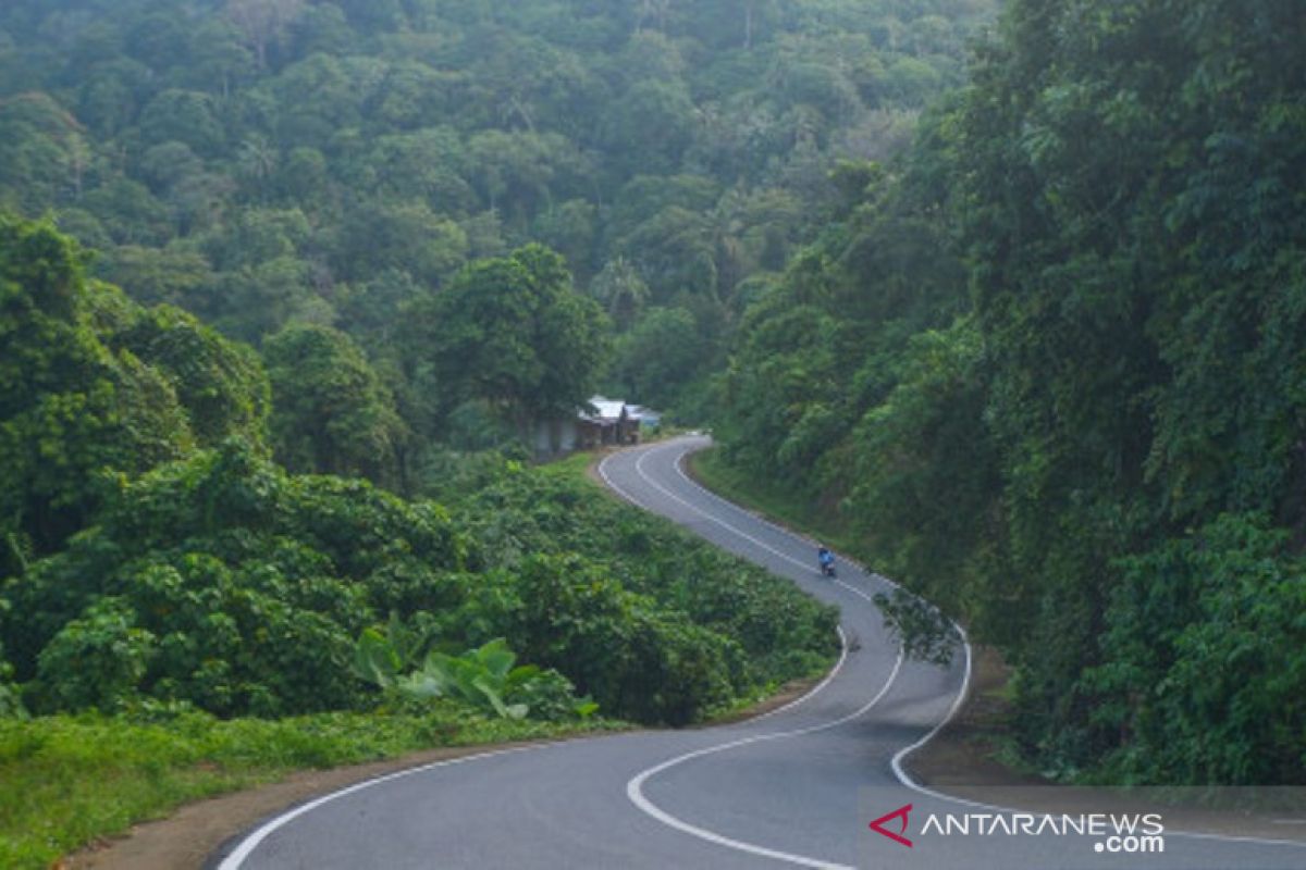 Pengendara motor melintas di jalan lingkar Nipah - Teluk Bayur yang baru selesai dibangun, di kawasan Bukit Peti-peti Padang, Sumatera Barat, Kamis (9/12/2021). Jalan pariwisata lingkar barat Sumbar sejauh 6,1 kilometer itu kini pembangunannya telah selesai dan bisa digunakan pengendara sebagai jalan alternatif dari pusat kota Padang menuju Teluk Bayur sambil menikmati pemandangan pantai. ANTARA FOTO/Iggoy el Fitra/hp.
