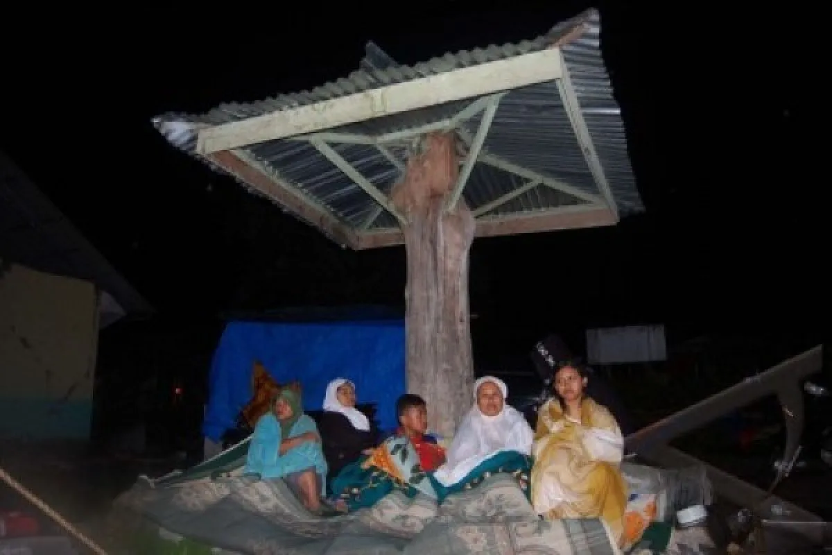 Sejumlah warga korban gempa berteduh ditempat seadanya di Desa Blang Mancom, Kecamatan Ketol, Aceh Tengah, Provinsi Aceh. (Antara)