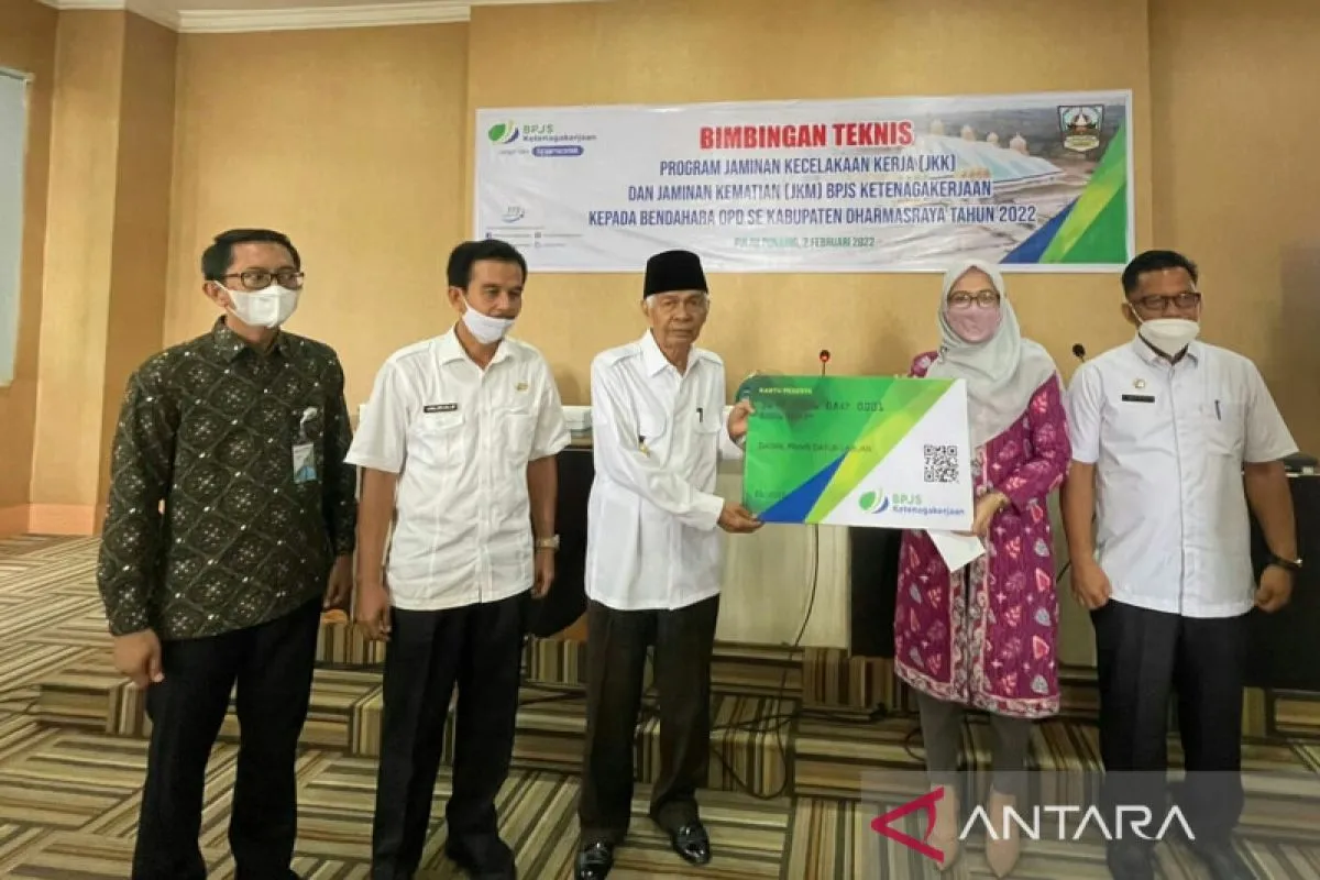 Padang Aro (ANTARA) - Pemerintah Kabupaten Dharmasraya melakukan bimbingan teknis Jaminan Kecelakaan Kerja (JKK) dan Jaminan Kematian (JKm) dan mendaftarkan 3.647 tenaga kerja non-ASN sebagai peserta BPJAMSOSTEK.