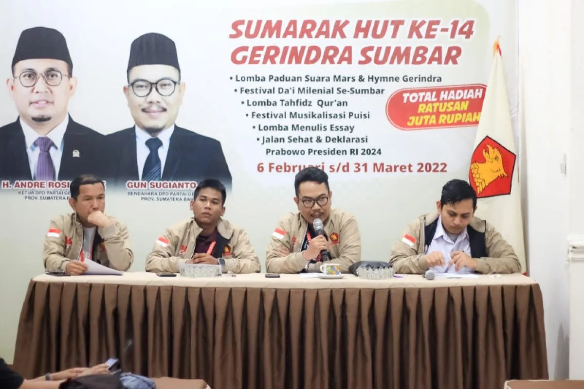 Ia menjelaskan dalam Sumarak Gerindra Sumatera Barat 2022 akan digelar festival Dai/Daiyah Milenial Se-Sumatera Barat, festival Tahfidz se-Sumatera Barat, festival musikalisasi puisi se-Sumatera Barat, dan lomba karya tulis essay tingkat nasional.