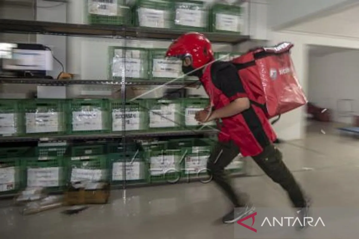 Kurir jasa ekspedisi SiCepat Ekspres berlari untuk melakukan pengiriman di Gerai SiCepat Ekspres Kebon Kelapa, Jakarta, Jumat (11/3/2022). Dalam rangka mendukung program pemerintah meningkatkan UMKM yang terhubung ke dalam ekosistem digital, SiCepat akan meningkatkan volume pengiriman hingga 32 persen di mana sebelumnya tahun 2021 pertumbuhan volume pengiriman hingga 93 persen, dengan rata-rata pengiriman paket sebanyak 2,8 juta paket per hari. ANTARA FOTO/Muhammad Adimaja/wsj.