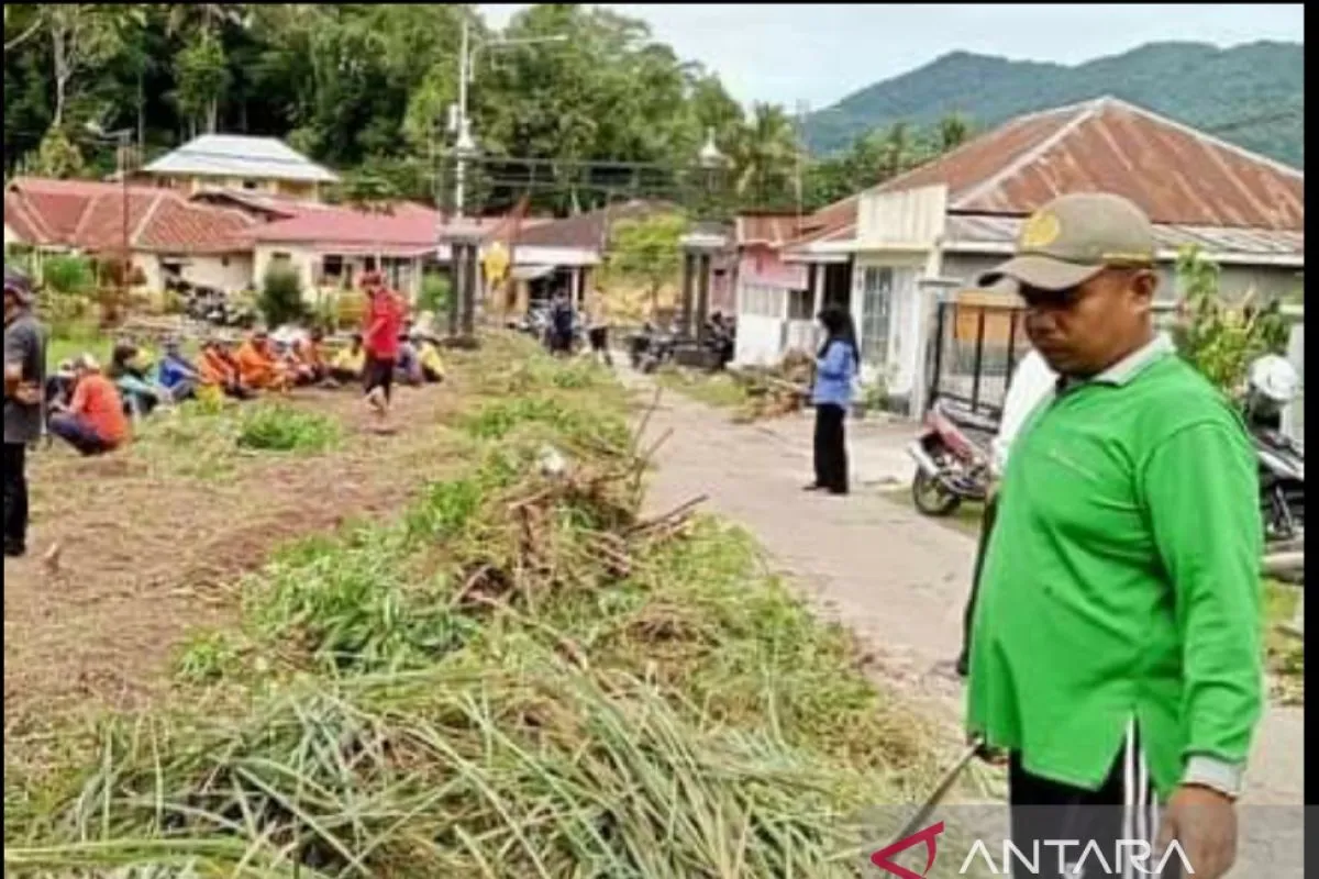 Padang Panjang (ANTARA) - Warga Desa Kubu Gadang, Kelurahan Ekor Lubuk dibantu tenaga kebersihan dari Kecamatan Padang Panjang Timur (PPT) laksanakan kegiatan gotong royong (goro) mempersiapkan libur Lebaran 1443 H. Mereka membersihkan lahan warga yang disiapkan sebagai tempat parkiran bagi wisatawan, Selasa.