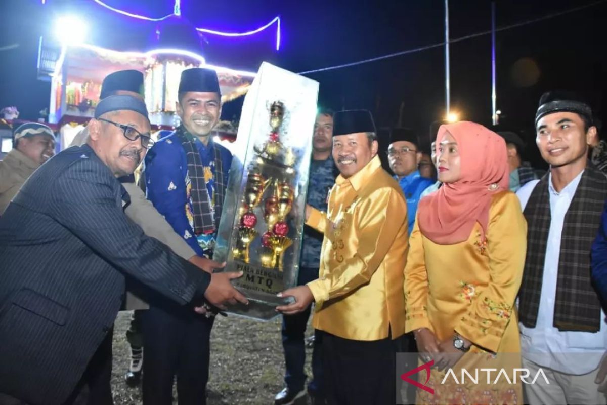 Trofi juara umum diserahkan langsung Bupati Agam Andri Warman kepada Camat Baso Rio Eka Putra pada penutupan MTQ Nasional ke XL pada Senin (30/5) malam.