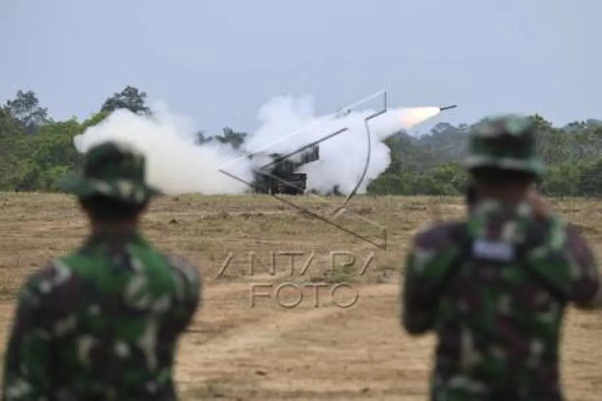 Sebuah 'Multiple Launch Rocket System (MLRS)' Astros II MK 6 dari TNI AD menembakkan roket saat melakukan latihan penembakan roket dalam 'Live Fire Exercise (LFX)' Super Garuda Shield 2022 di Puslatpur Baturaja, Ogan Komering Ulu (OKU) Timur, Sumatera Selatan, Rabu (10/8/2022). Latihan penembakan roket melibatkan peluncur roket multipel atau MRLS Astros II MK 6 dari TNI AD dan Himars US Army. ANTARA FOTO/M Risyal Hidayat/foc.