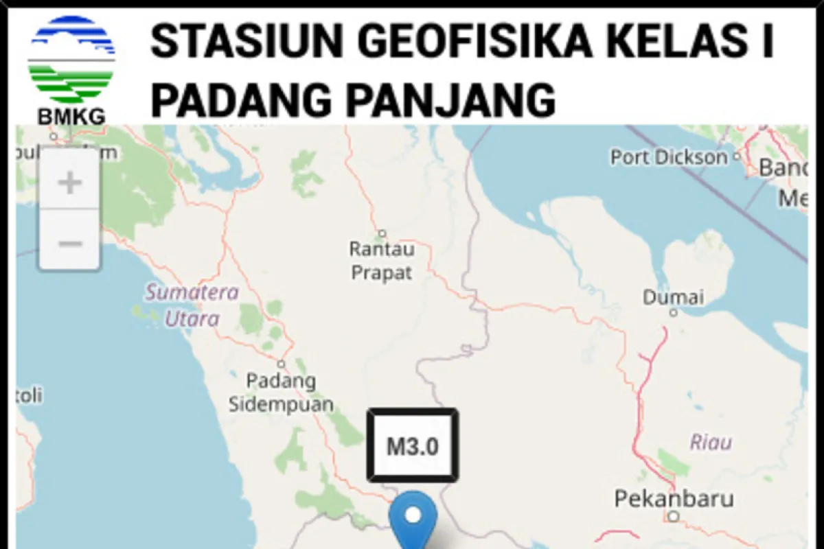Kemudian Magnitudo 3,0 pukul 19:08:40 WIB, lokasi 0.23 LU,100.00 BT (2 kilometer Timur Laut Talu -Pasaman Barat-Sumbar), Kedalaman 10 kilometer. ***3***