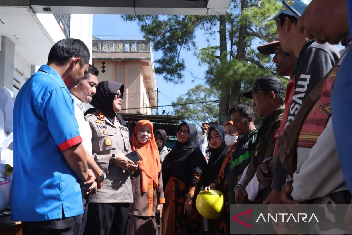 Kapolres Bukittinggi, AKBP Wahyuni Sri Lestari melakukan rangkaian kegiatan sosialisasi dan bantuan sosial kepada masyarakat dalam rangka Peringatan Hari Polwan ke-74, kali ini Kapolres memberikan bantuan kepada perkumpulan pekerja dari KSPSI Bukittinggi, Rabu (31/08)(Antara/Alfatah)