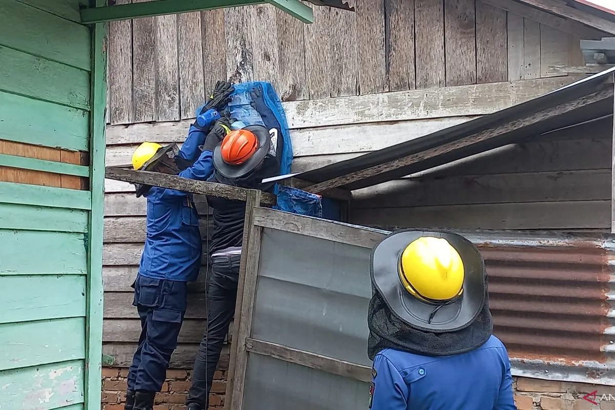 "Dilaporkan siang tadi, proses evakuasi dilakukan dengan cara membongkar dinding rumah warga yang ternyata sudah berisi sarang tawon jenis lebah madu," kata salah seorang petugas, Renggi.