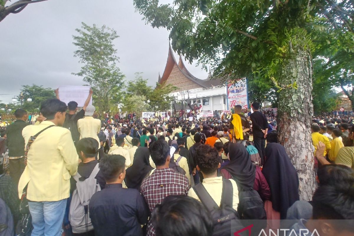 Pada bagian lain, ribuan mahasiswa menggelar aksi unjuk rasa di depan Kantor DPRD Sumbar sejak pukul 14.00 WIB kemudian membubarkan diri dengan tertib sekitar pukul 16.30 WIB.