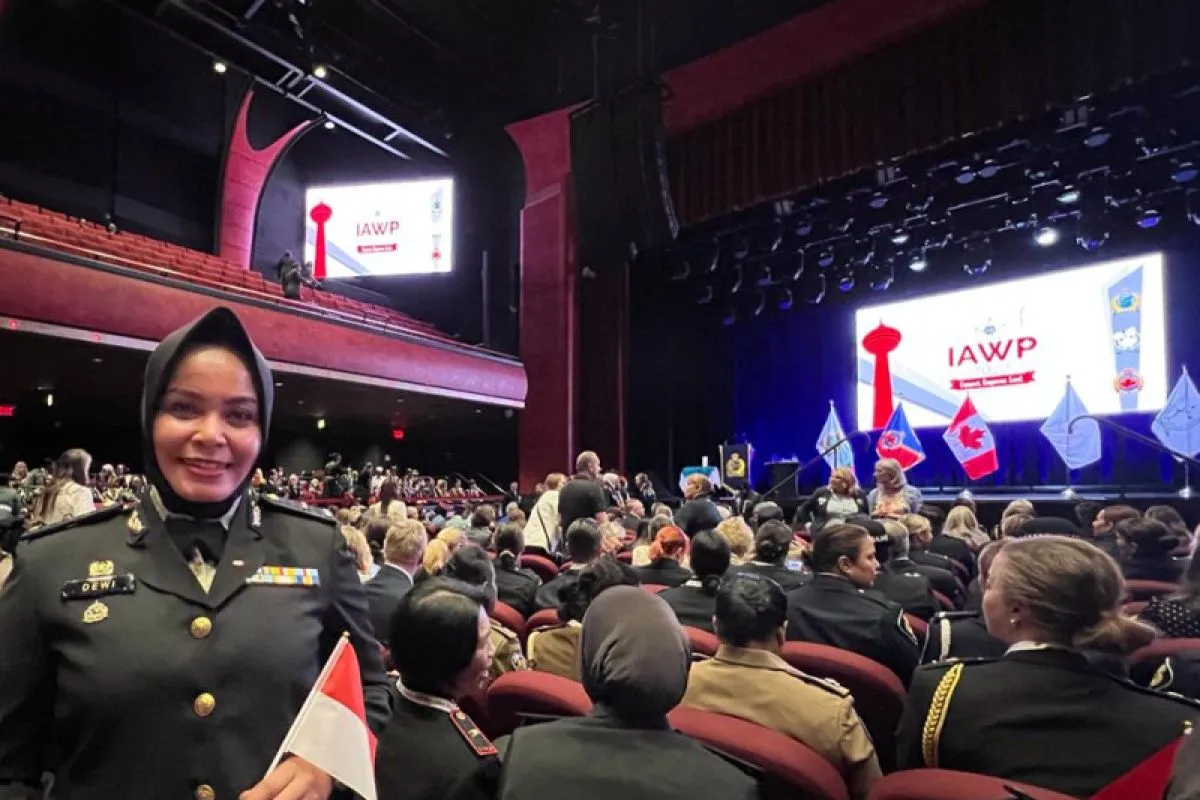 Ipda Dewi Suryani yang merupakan satu-satunya delegasi Indonesia dari Polda Sumbar dalam kegiatan yang digelar di Grand Hall Falls view Niagara, Ontario, Canada pada 12 September 2022 waktu setempat.