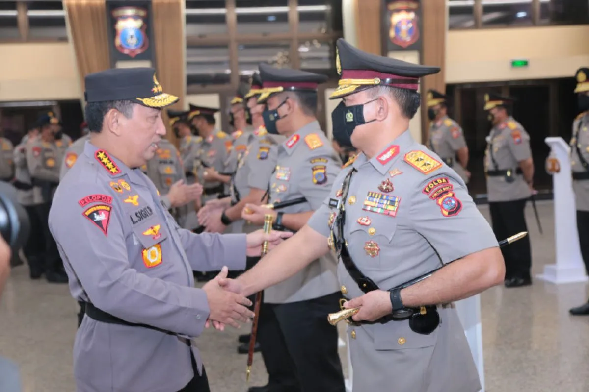 Padang (ANTARA) - Kapolri Jenderal Polisi Listyo Sigit Prabowo resmi melantik Irjen Pol Suharyono sebagai Kapolda Sumatera Barat bersama sejumlah perwira tinggi di lingkungan Polri di Jakarta, Selasa.