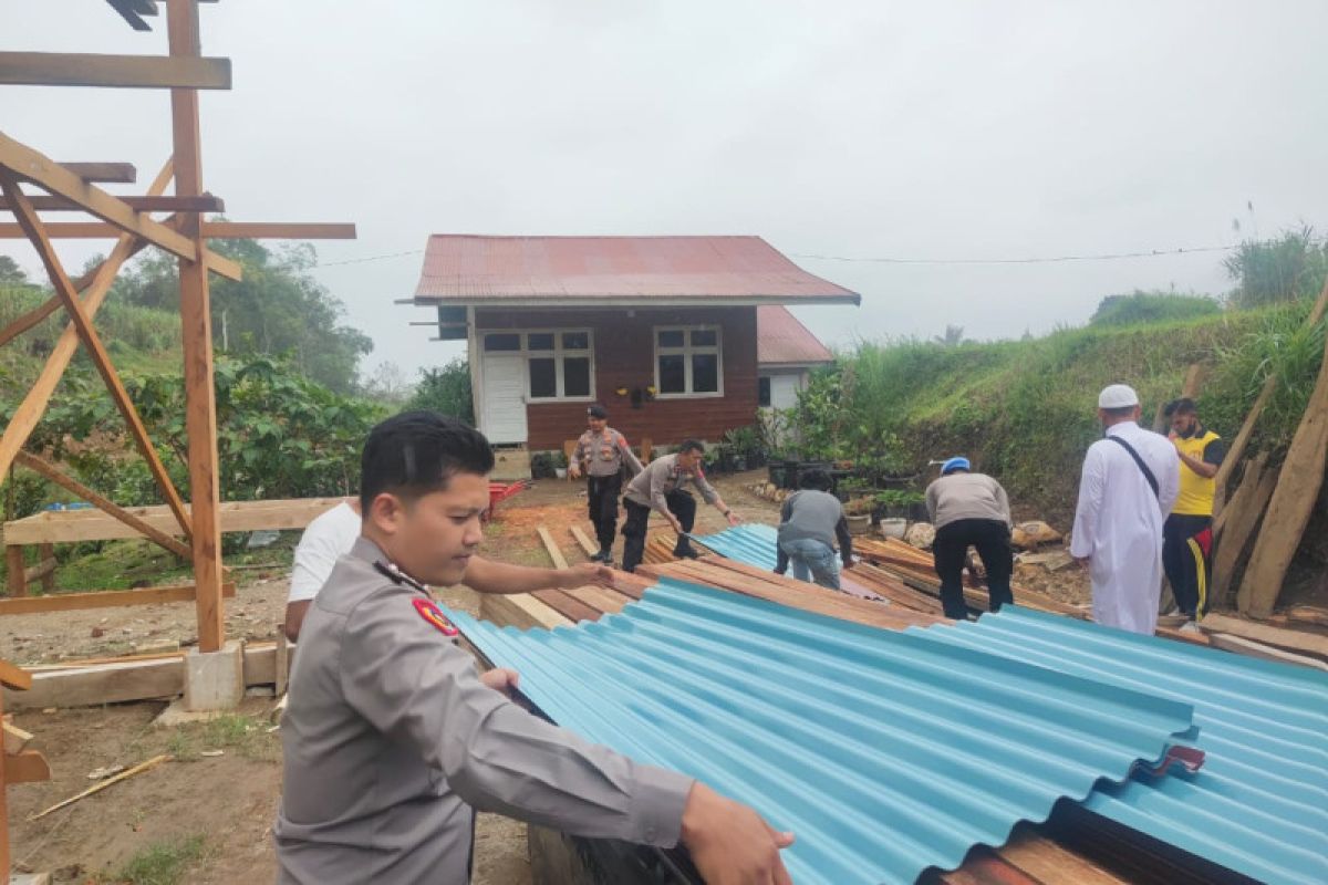 Kapolres Agam Sumatera Barat AKBP Ferry Ferdian menyalurkan bantuan material berupa kayu dan atap seg dalam membantu pembangunan Pondok Pesantren Al-Hafidz Ibnu Hajar Jorong Gajah Mati, Nagari Lawang, Kecamatan Matur, wujud kepedulian Polri ke masyarakat.
