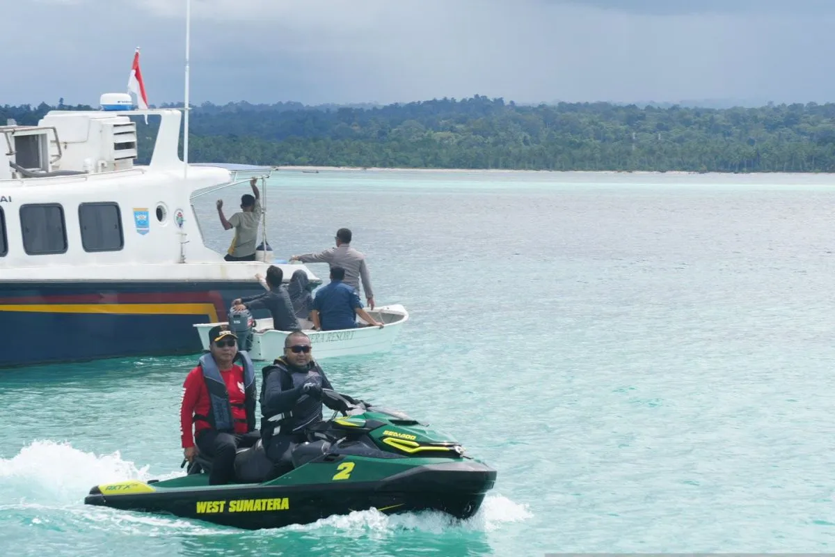 Padang (ANTARA) - Wakil Gubernur Sumbar, Audy Joinaldy kembali menjajal jalur laut Padang-Mentawai sepanjang 100 Mil dengan Jetski, Senin (5/12/22). Kunjungan Wagub Sumbar ini begitu berkesan. Bukan hanya karena adrenalin menempuh perjalanan dengan jetski, tapi juga karena kunjungan ini membawa senyum dan harapan bagi guru dan tenaga kependidikan di Kepulauan Mentawai.