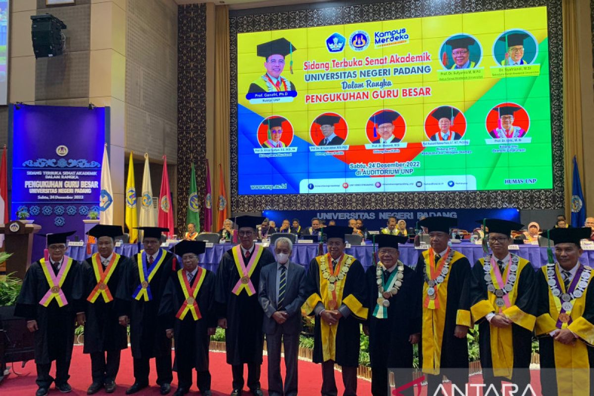 Padang (ANTARA) - Universitas Negeri Padang (UNP) Sumatera Barat mengukuhkan lima guru besar dalam Rapat Senat Akademik Universitas yang digelar secara terbuka di Auditorium Universitas Negeri Padang yang digelar Sabtu (24/12).